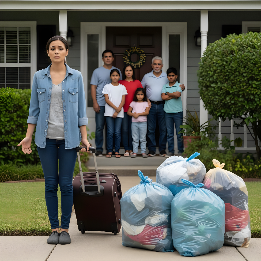 Вернувшись, я застала на лужайке вещи, собранные в чёрные мешки.