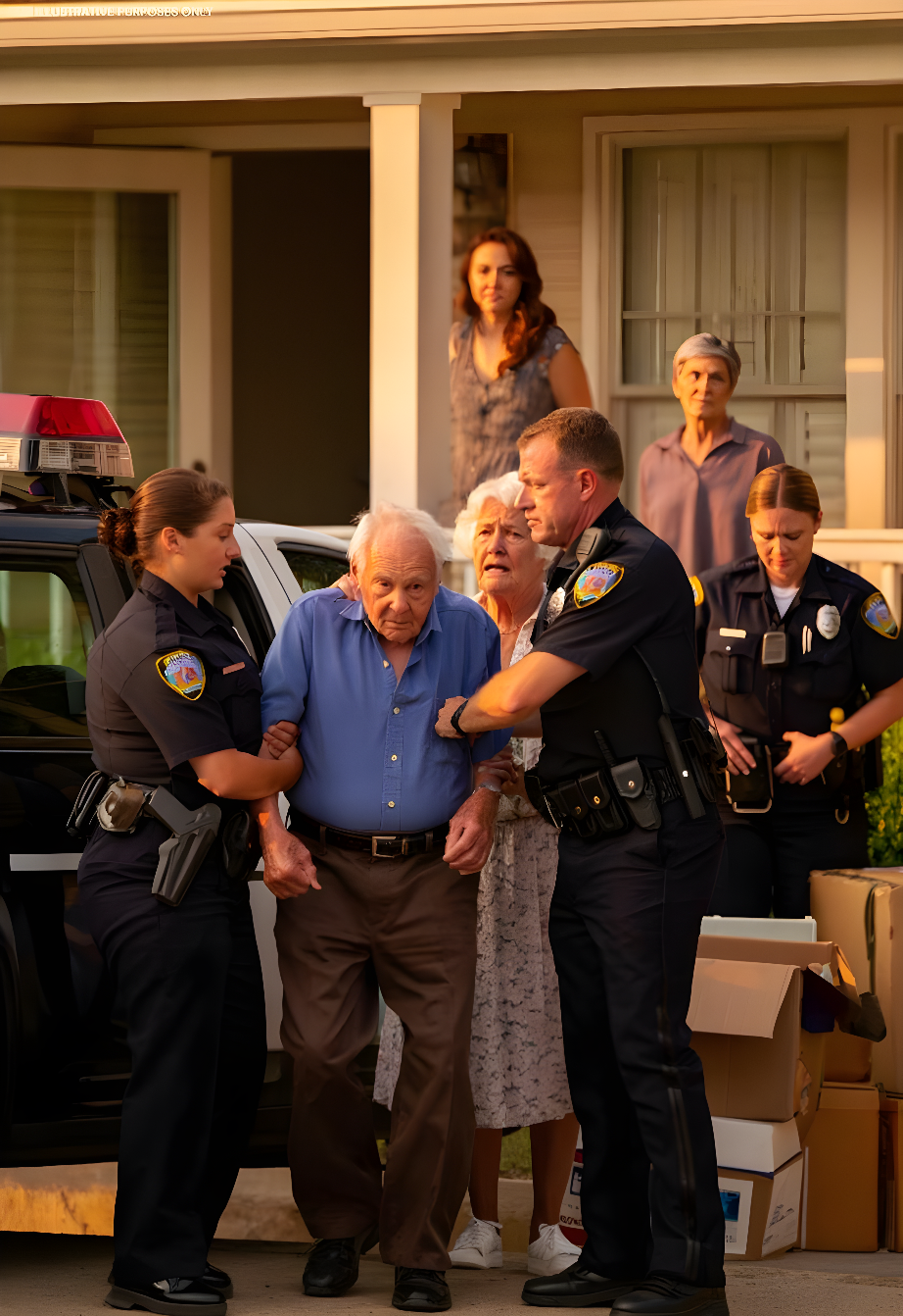 Когда мы приехали, под домом уже стояла патрульная машина. Родители разместились на ступеньках с чемоданами. Отец поднял руки: «Клара, слава богу ты здесь. Скажи им, что это недоразумение.»