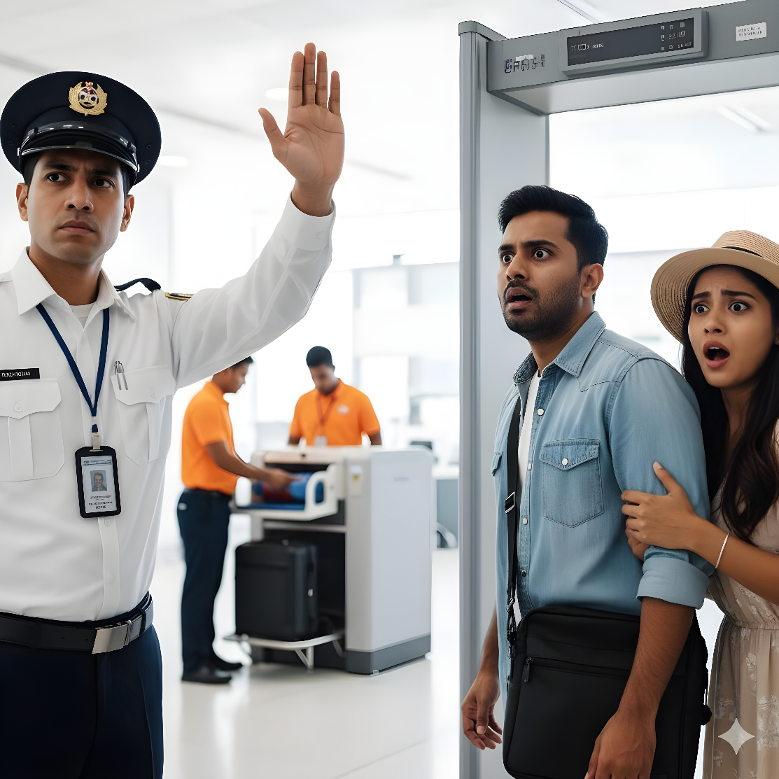 Когда пара завершала регистрацию и направлялась к паспортному контролю, сотрудники внезапно остановили их. Голос сотрудника прозвучал холодно и чётко: