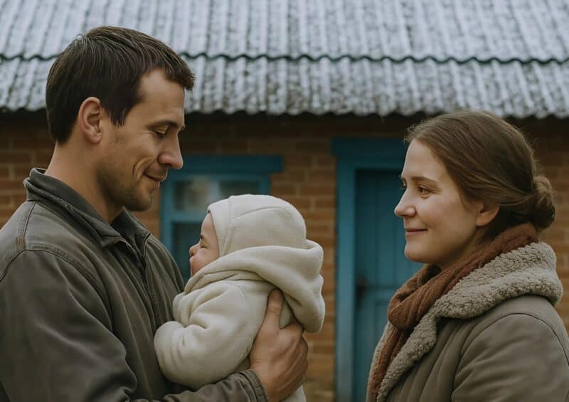 Мария открыла дверь. На пороге стоял мужчина в промокшей куртке, волосы и ресницы облеплены снегом. На руках — ребёнок, едва различимый под старым одеялом.