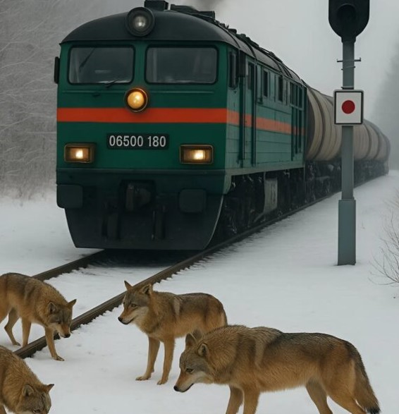 Стая волков застыла прямо на железнодорожных путях, словно пытаясь преградить дорогу составу. Когда машинист всмотрелся внимательнее, он понял, что хищники стояли здесь не случайно — они охраняли нечто, скрытое за их спинами.